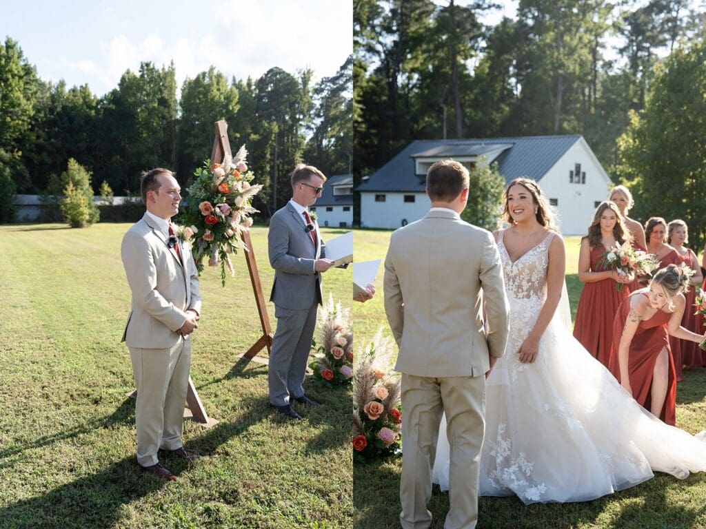 Olivia and Jake chose not to do a first look, but they did do a back-to-back no-peek moment before the ceremony, which made their golden-hour portraits afterward feel extra magical.