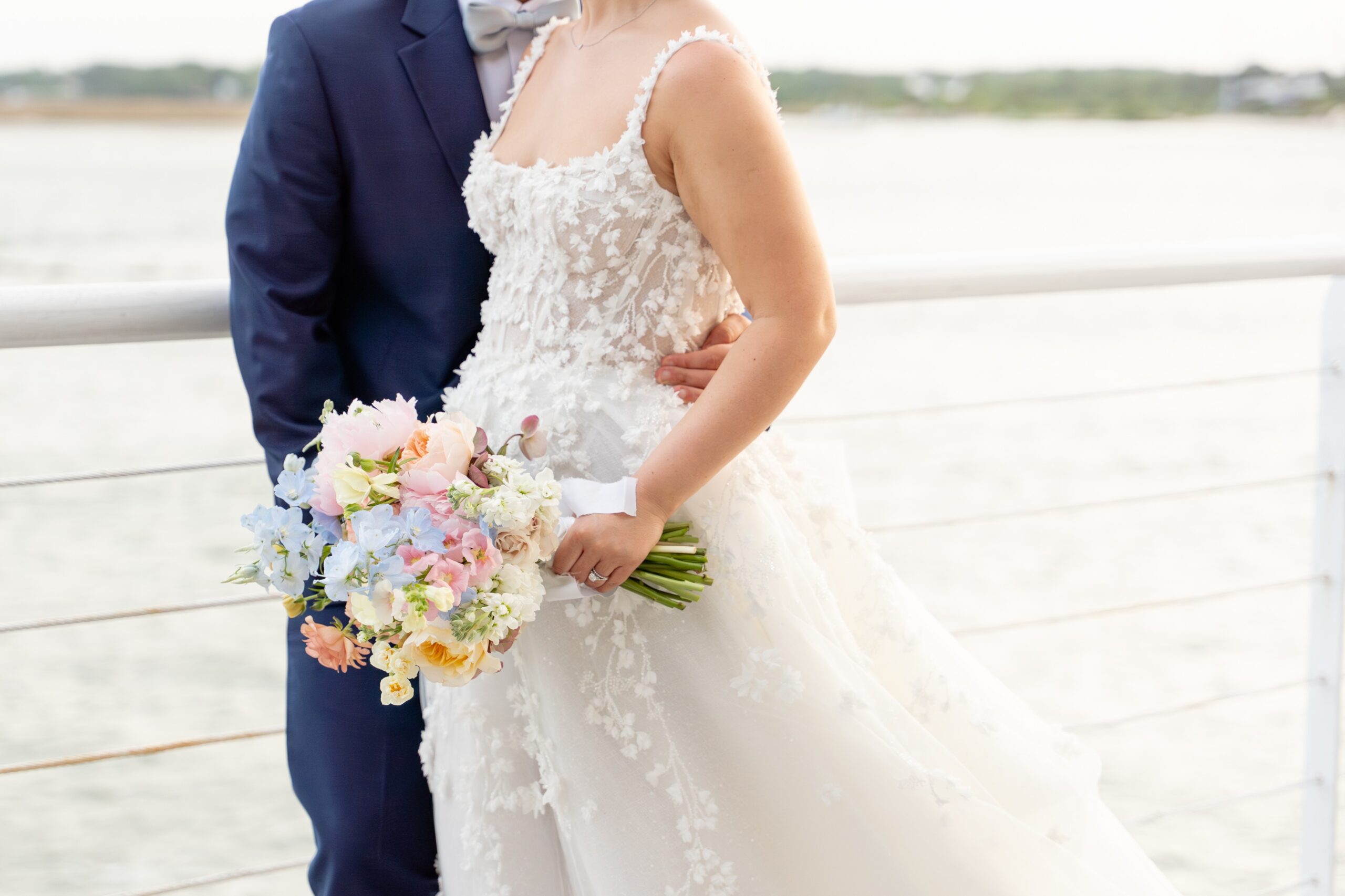 A few simple adjustments can make a big difference in how you look in photos. Slightly angling your body instead of standing straight on to the camera, keeping your arms slightly away from your body, and standing tall with your shoulders back can all help create a flattering pose. Your photographer can also share suggestions during your wedding day so that you’re not overthinking your poses.
