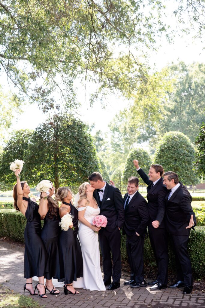 Wedding party photos are some of my favorite shots. Some of the most memorable moments and best photos are when you’re enjoying this time together, sharing a toast, or posing for a fun photo with your wedding party. There are so many great ideas for posing with your wedding party, so you can use these for inspiration.
