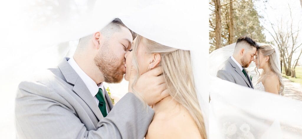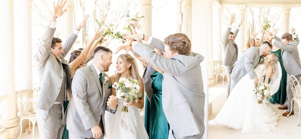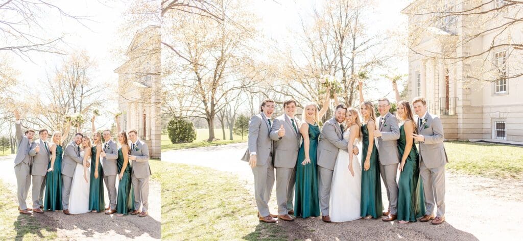 Kenzi and Jack’s April spring wedding at the Great Marsh Estate was the perfect mix of romantic and fun. The ceremony took place outdoors on the estate’s dreamy grounds, with forest green bridesmaid dresses and soft spring details setting the tone.