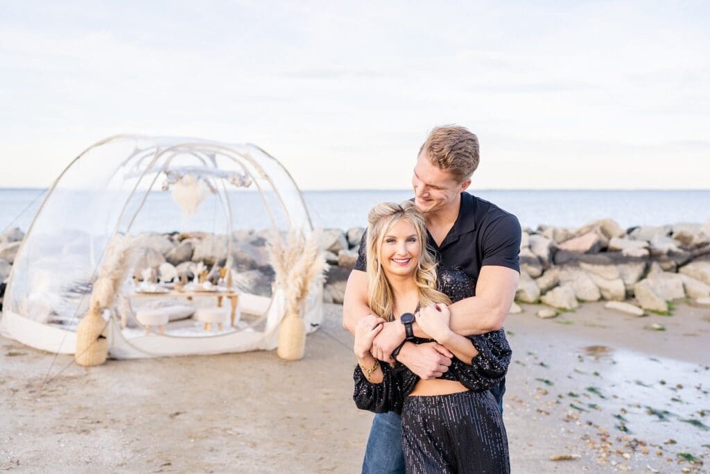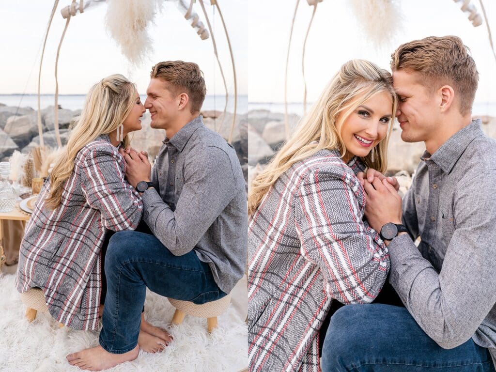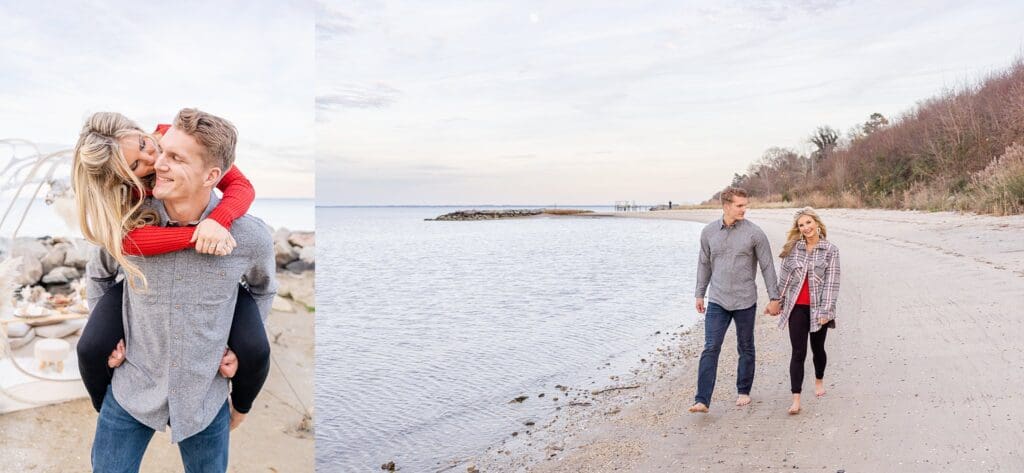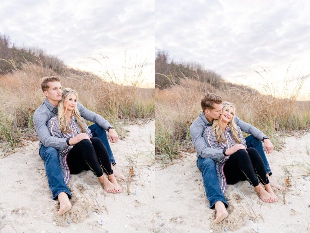 This Smithfield, VA couples session was full of personal touches, cozy connection, and just a little sparkle. Keep scrolling to see more of their dreamy beach portraits!
